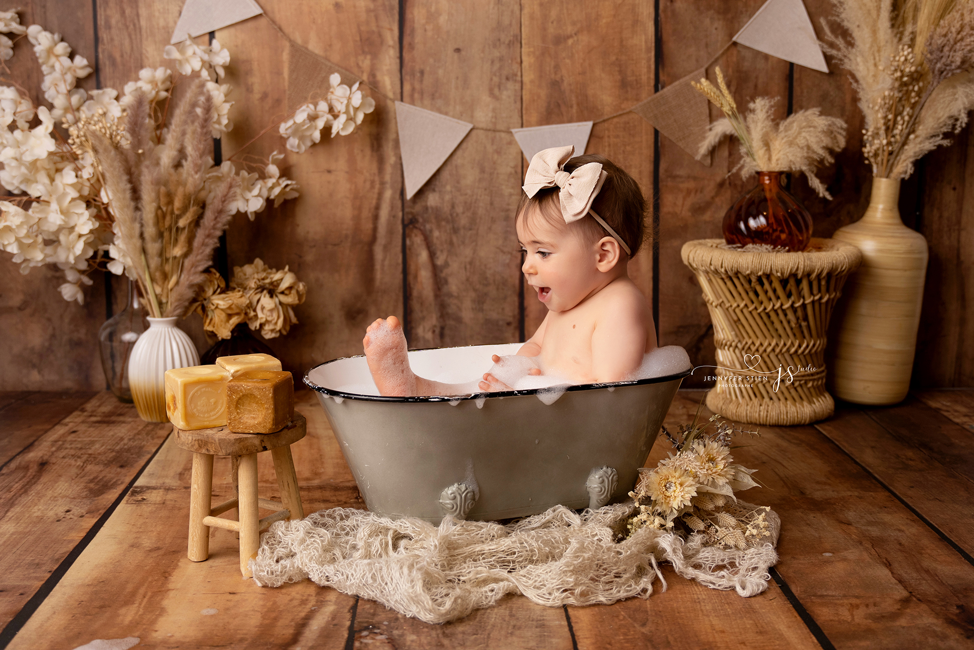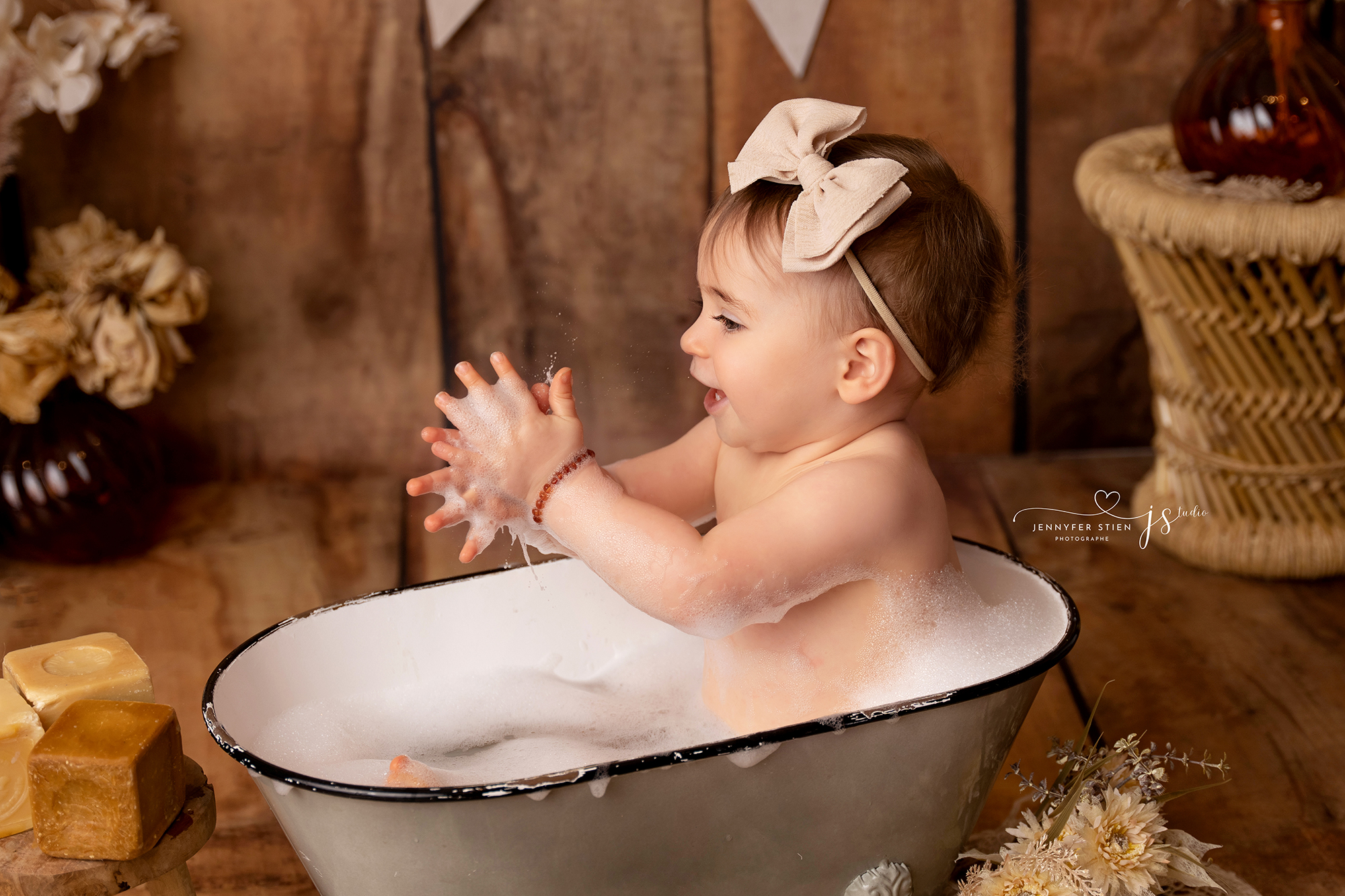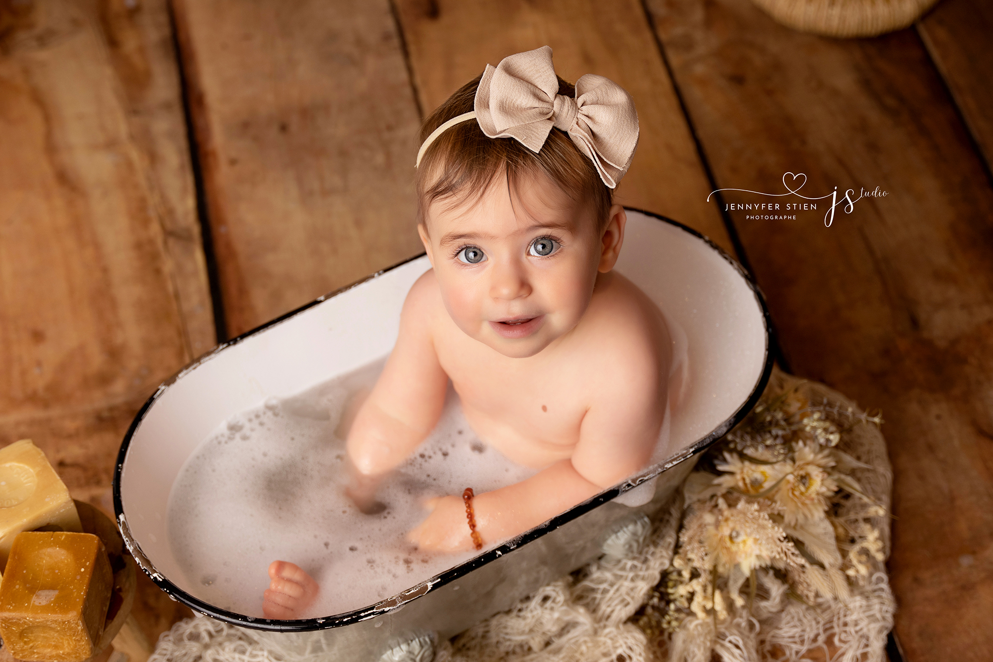 - Pour terminer la séance : Une baignoire miniature dans laquelle les bébé adorent clapoter et qui nous offriront des images magiques